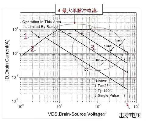 (1)確保在最差條件下,MOSFET的所有功率限制條件均在SOA限制線以內。