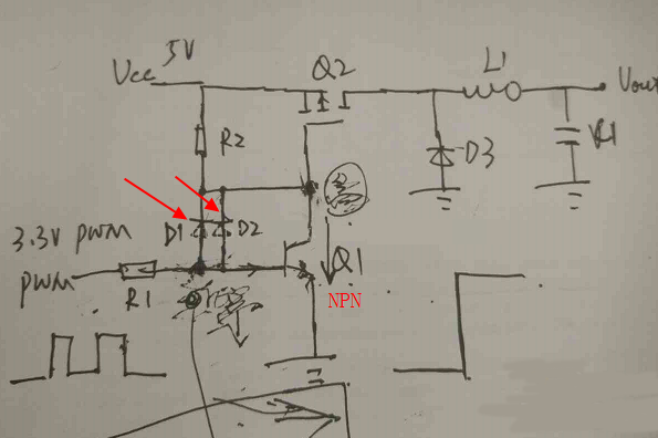 肖特基二極管的鉗位下圖為一個(gè)分立器件搭建的BUCK電路,但是不明白圖中的兩個(gè)肖特基二極管(D1 D2)的作用是什么8 3 2 肖特基箍位提高晶體